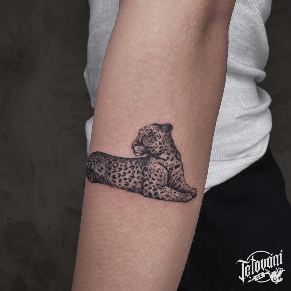 Tetování zvířata, levhart na předloktí