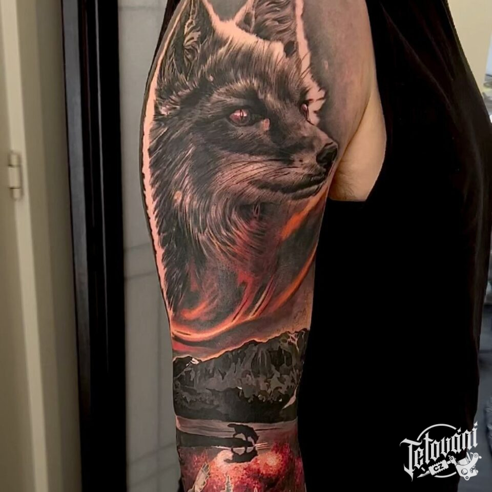 Tetování zvířata, liška, rukáv