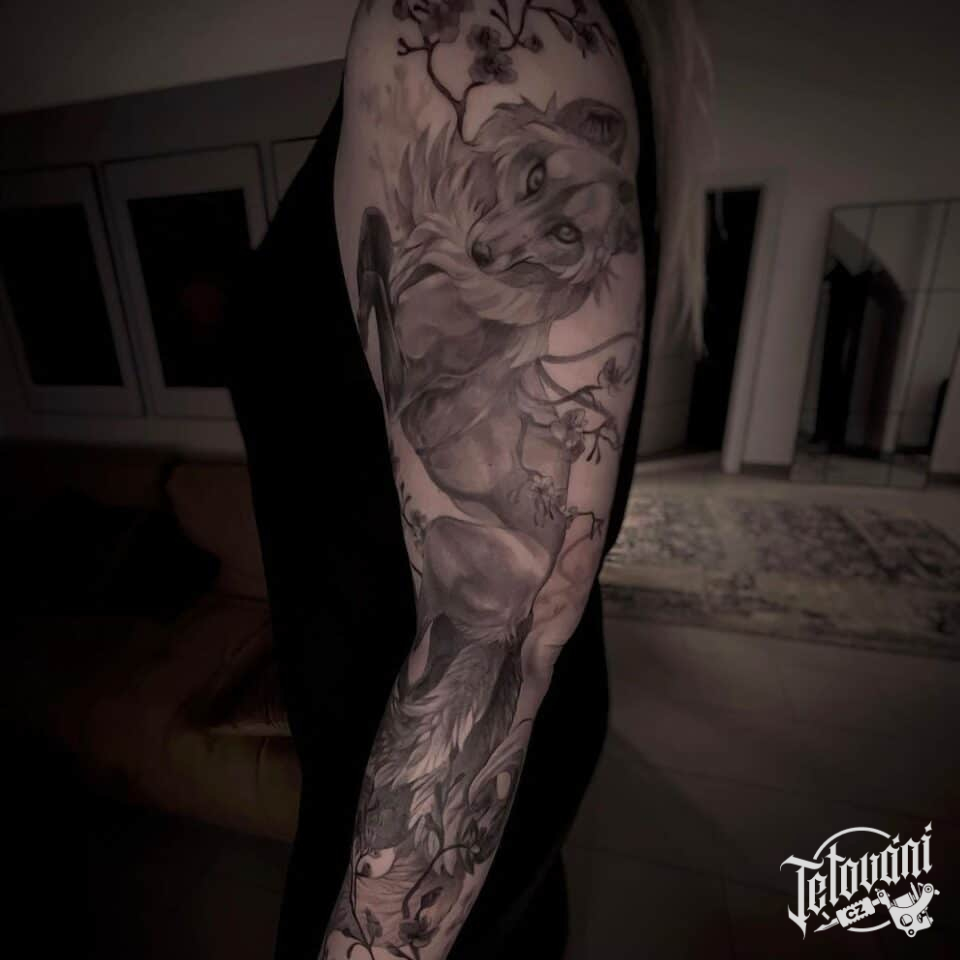 Tetování zvířata, liška, rukáv