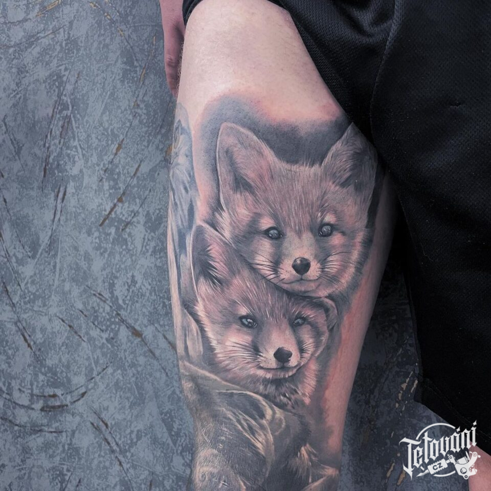 Tetování zvířata, lišky na stehně