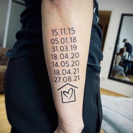 Tetování zvířata, lvi a datum narození dětí na předloktí