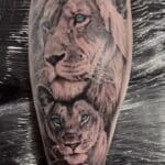 Tetování zvířata, lvi na lýtku