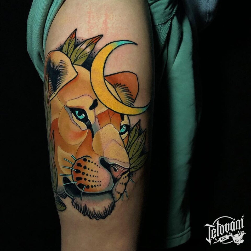 Tetování zvířata, lvice na paži