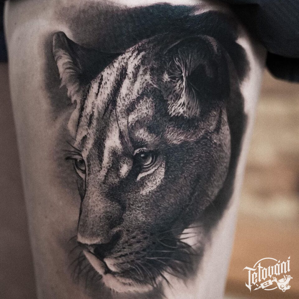Tetování zvířata, lvice na stehně
