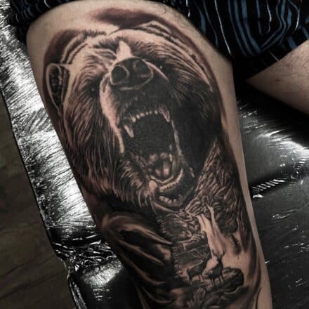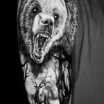 Tetování zvířata medvěd a jelen, příroda, les na rameno