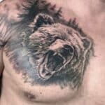 Tetování zvířata, medvěd a příroda les na prsa a rameno