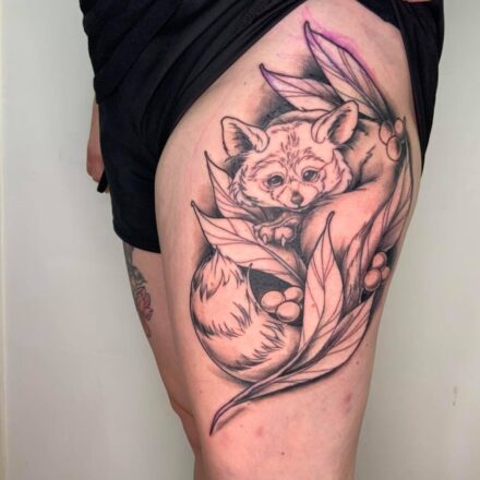 Tetování zvířata, medvěd na lýtko