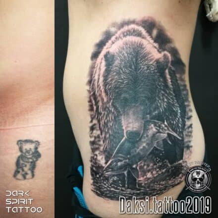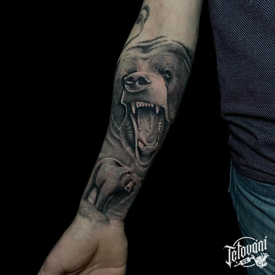 Tetování zvířata, medvěd na předloktí