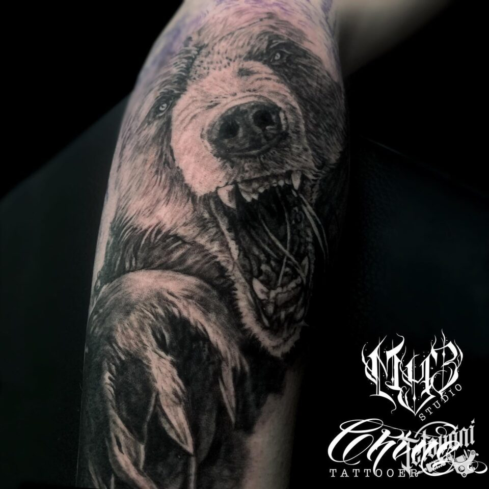 Tetování zvířata, medvěd na předloktí
