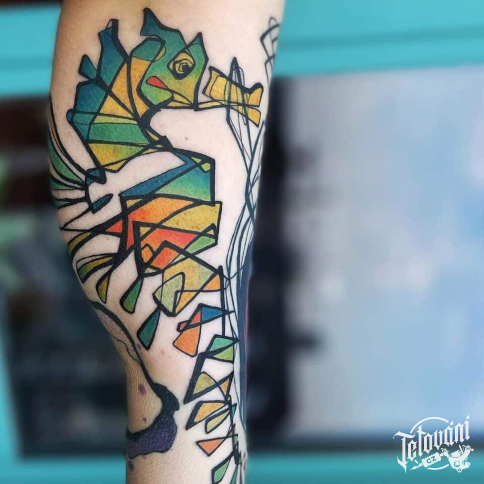 Tetování zvířata, mořský koník na lýtku