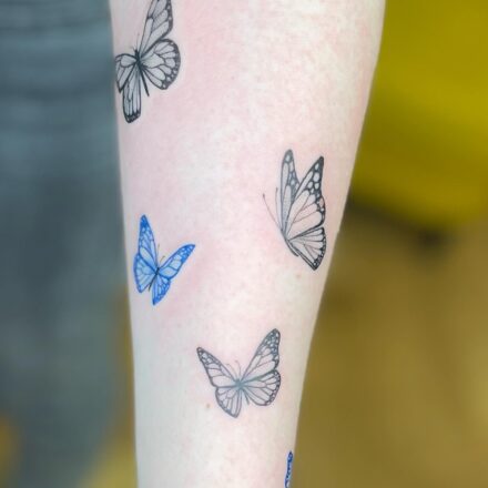 Tetování zvířata, motýl a květiny na hrudníku