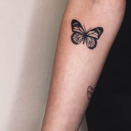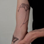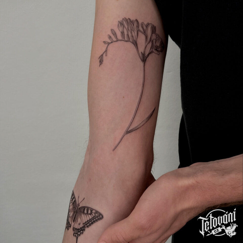 Tetování zvířata, motýl a květiny na paži