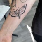 Tetování zvířata, motýl a lebka na předloktí