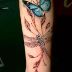 Tetování zvířata, motýl a vážka na předloktí