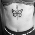 Tetování zvířata, motýl a znaky a symboly, dýka na na břicho
