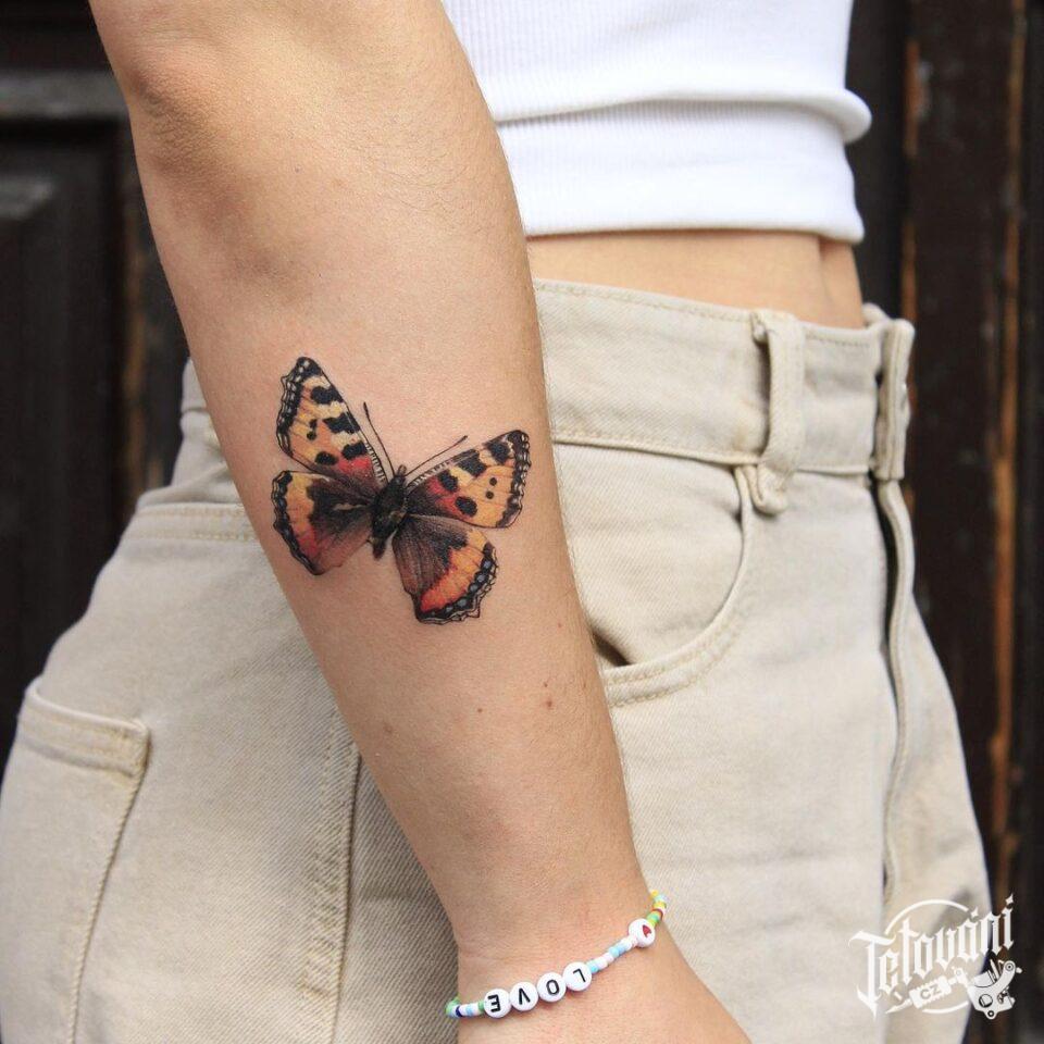 Tetování zvířata, motýl Babočka kopřivová na předloktí