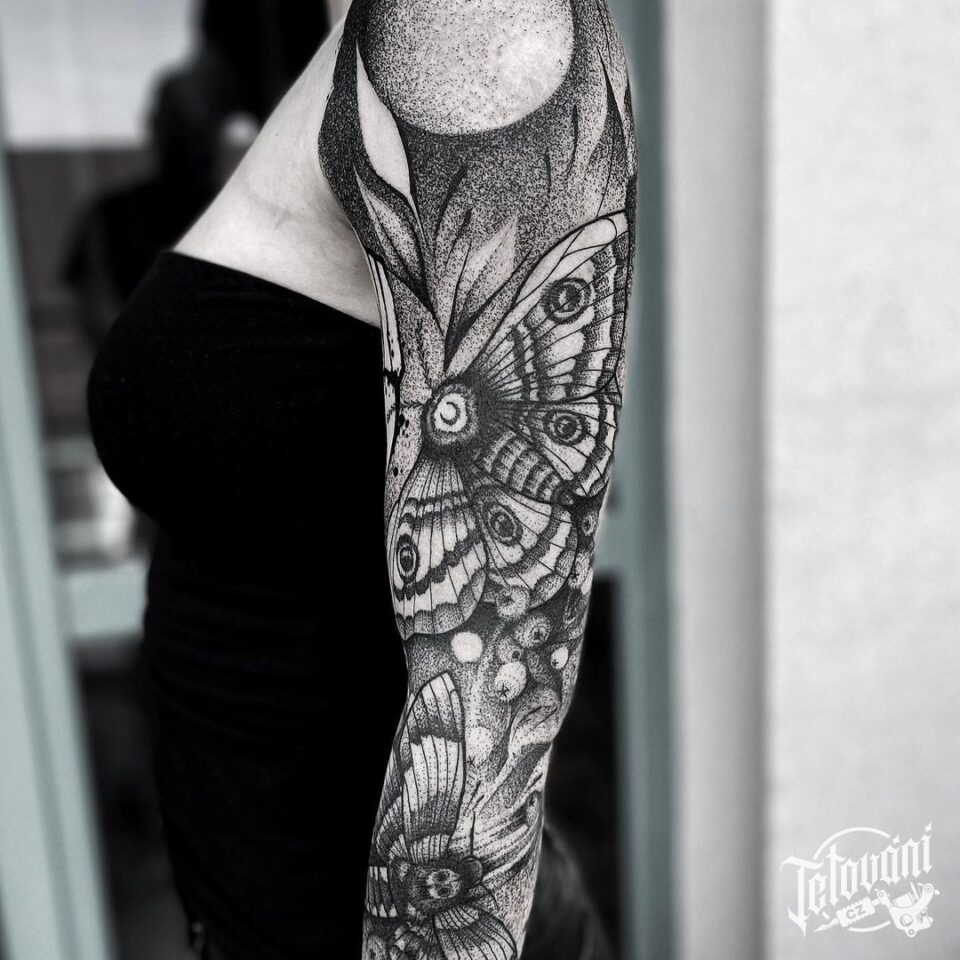Tetování zvířata, motýl, lišaj smrtihlav, rukáv