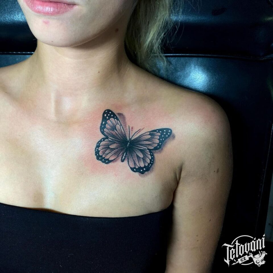 Tetování zvířata, motýl na klíční kosti