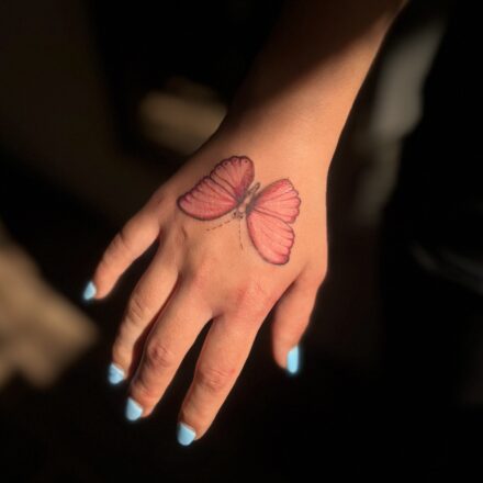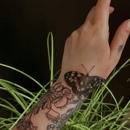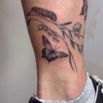 Tetování zvířata, motýli a květiny nad kotníkem
