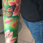 Tetování zvířata, motýli, květiny na předloktí
