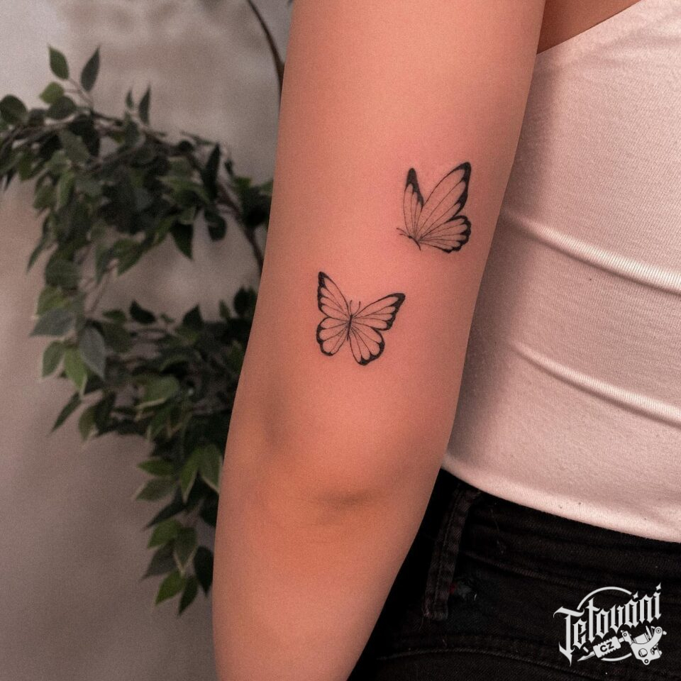 Tetování zvířata motýli na rameno