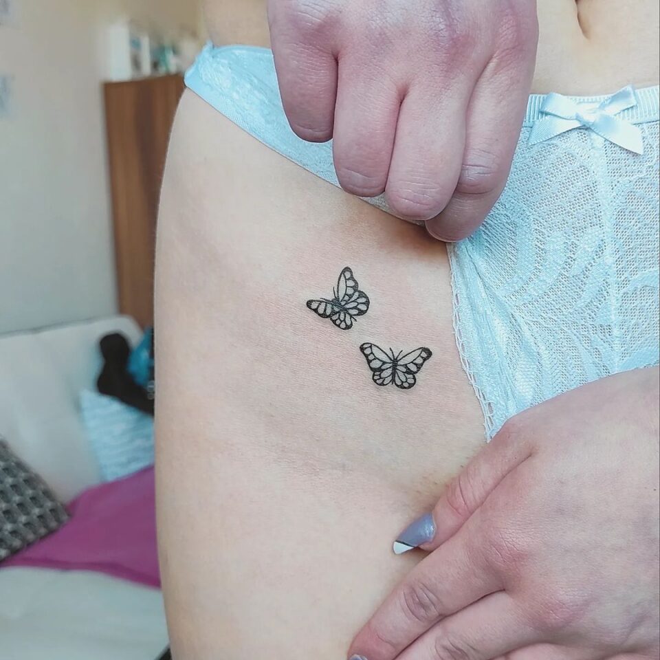 Tetování zvířata, motýli na stehně