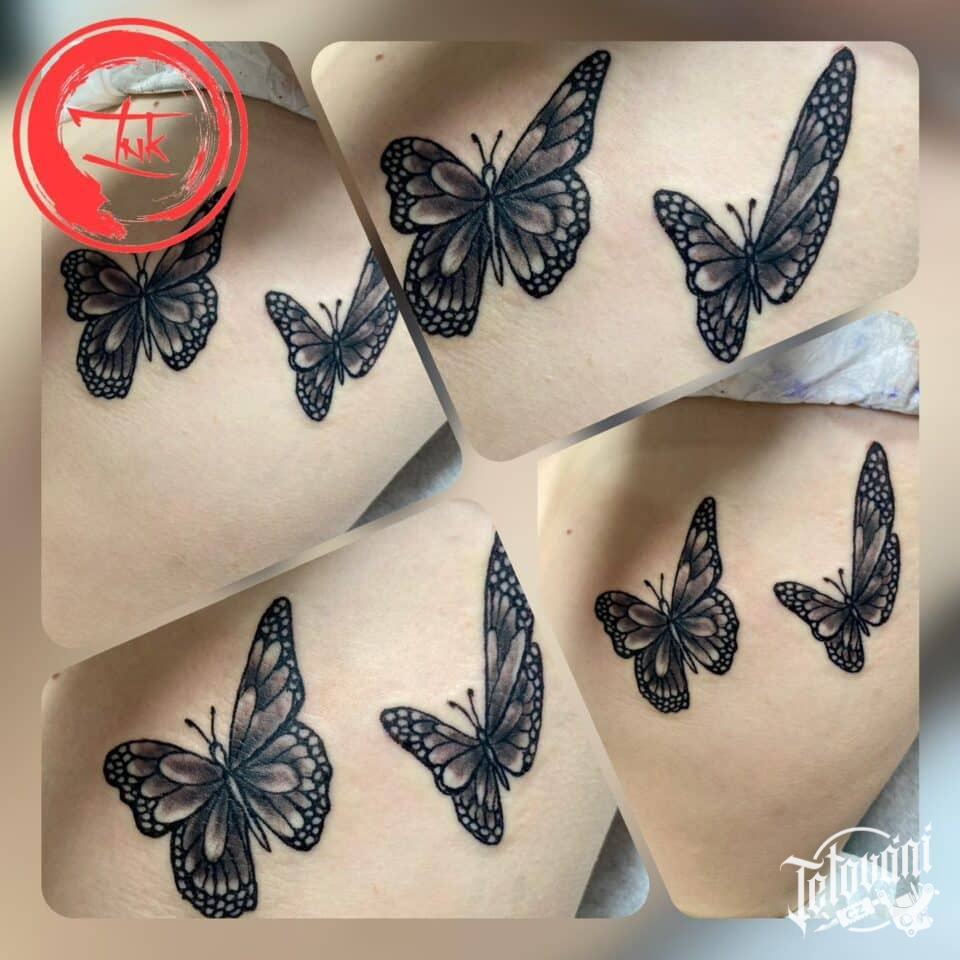 Tetování zvířata, motýli na žebrech