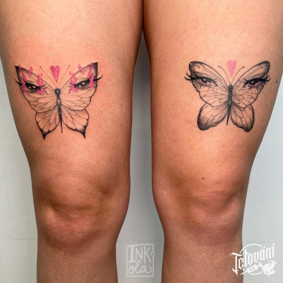 Tetování zvířata motýli, symboly na stehna