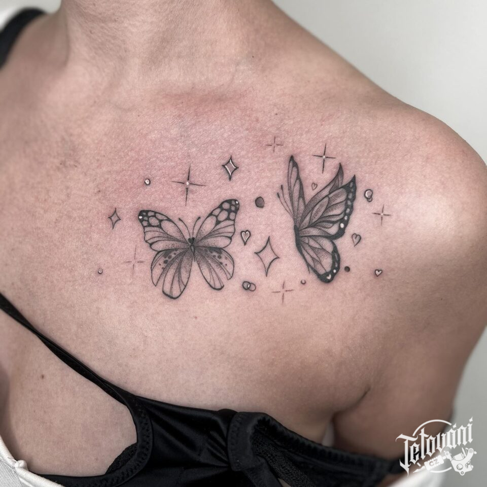 Tetování zvířata, motýly na hrudi