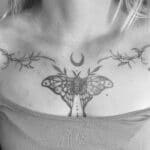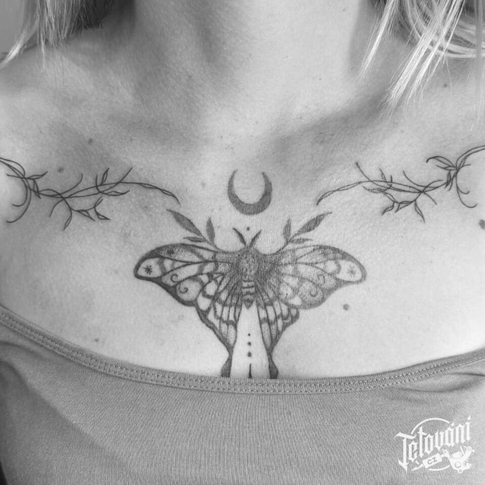 Tetování zvířata, můra, měsíc a květiny na hrudník