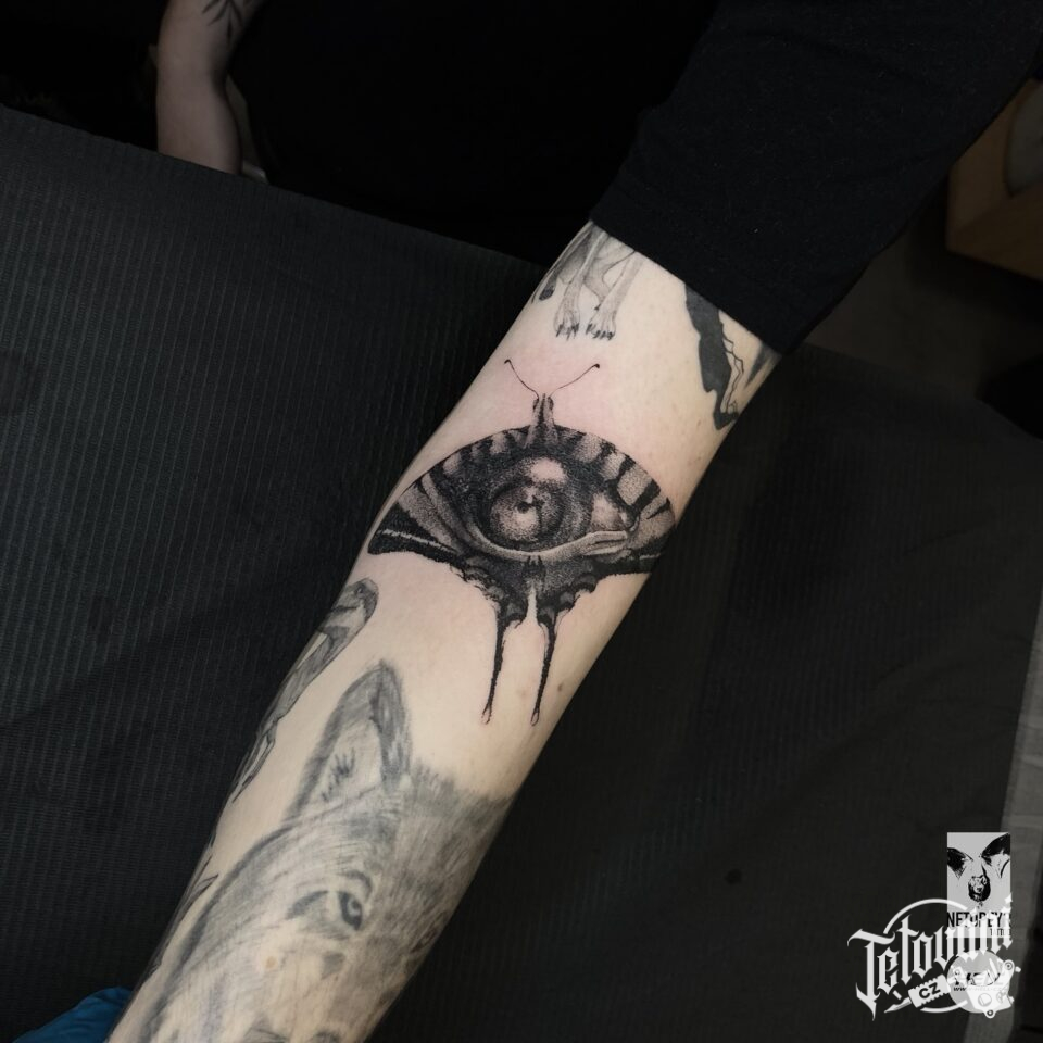 Tetování zvířata, můra, symbol na předloktí