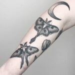 Tetování zvířata, můry a měsíc na předloktí