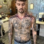 Tetování zvířata opice, medvěd, orel, vlk na prsa, hrudník a břicho