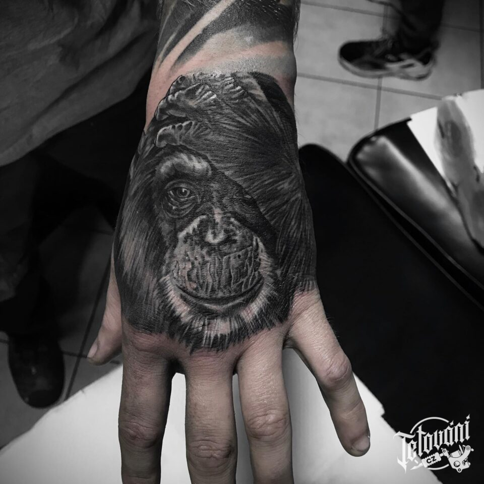 Tetování zvířata, opice na hřbetu ruky