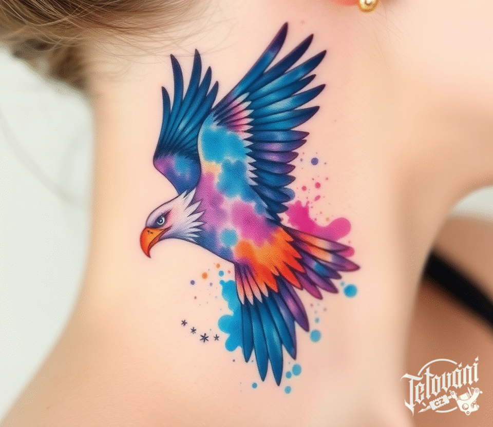 Tetování zvířata, orlice na krku