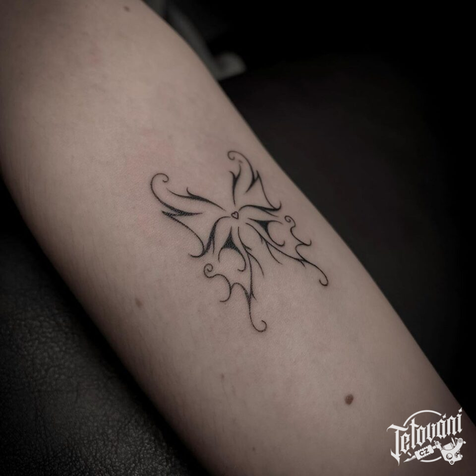 Tetování zvířata, ornament motýl na předloktí