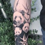 Tetování zvířata pandy, luční kvítí na předloktí