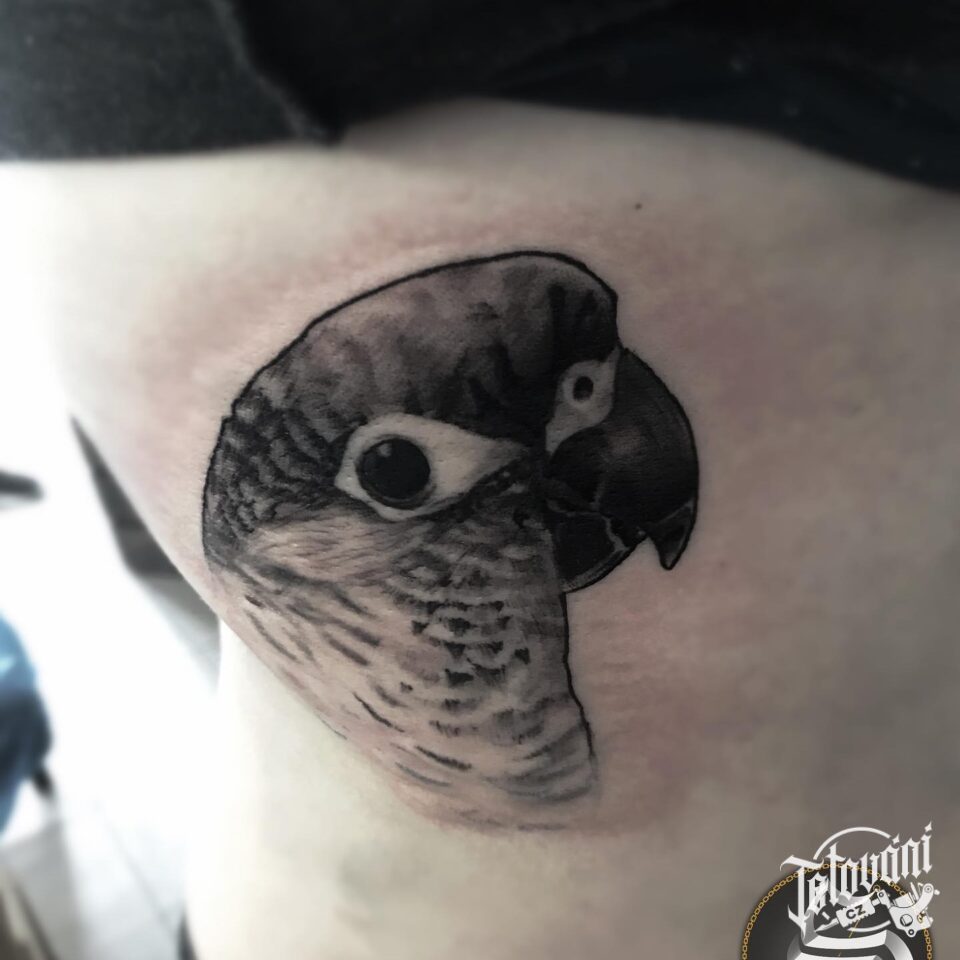 Tetování zvířata, papoušek na boku břicha