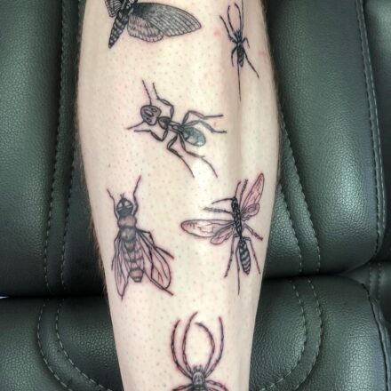 Tetování zvířata, pavouk s pavučinou, smrtihlav, oko, nápisy, růže na předloktí