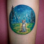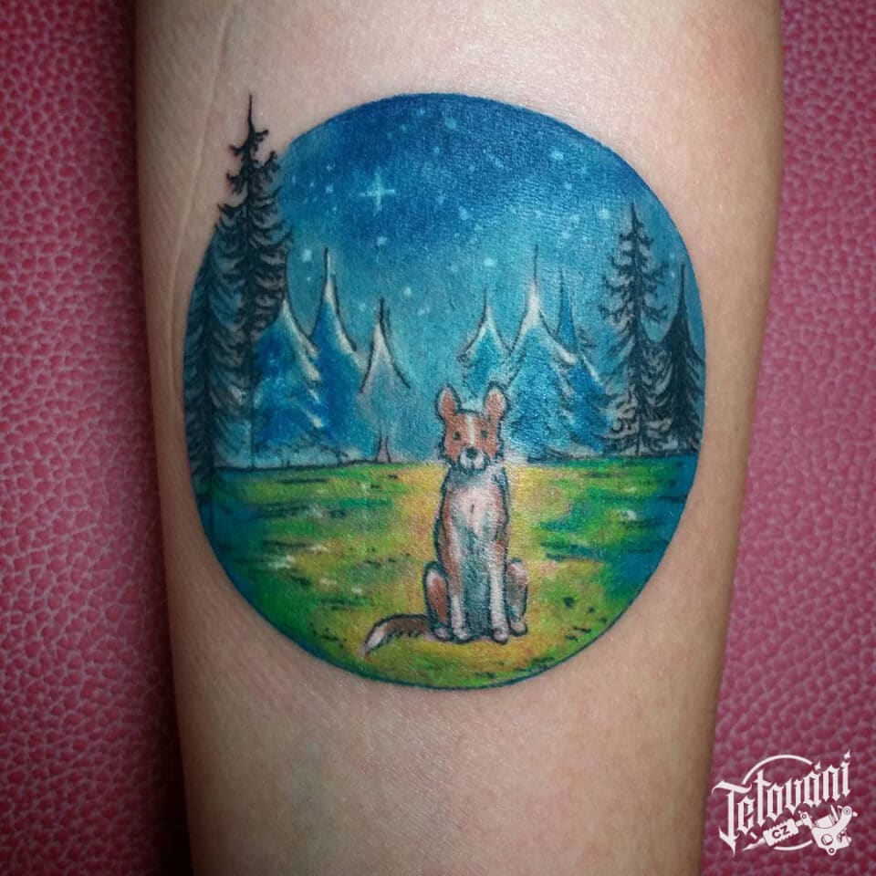 Tetování zvířata, pes a příroda na předloktí