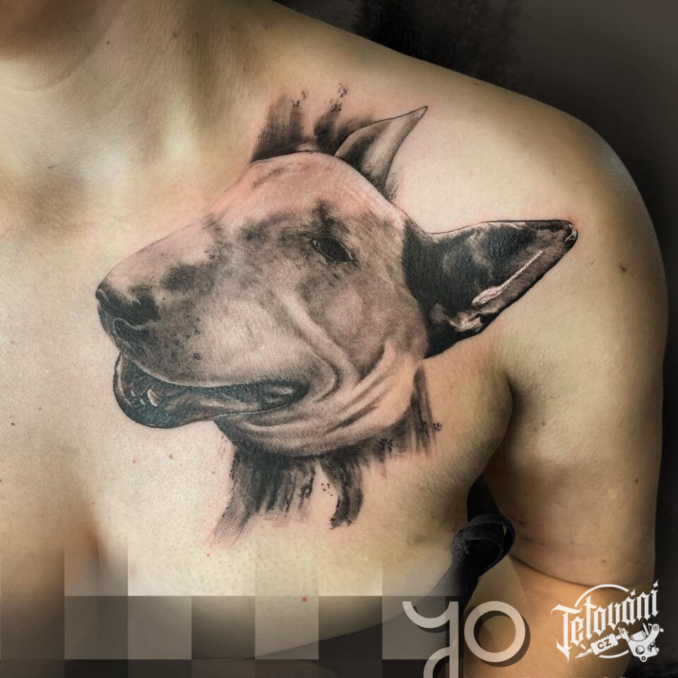 Tetování zvířata, pes na prsa