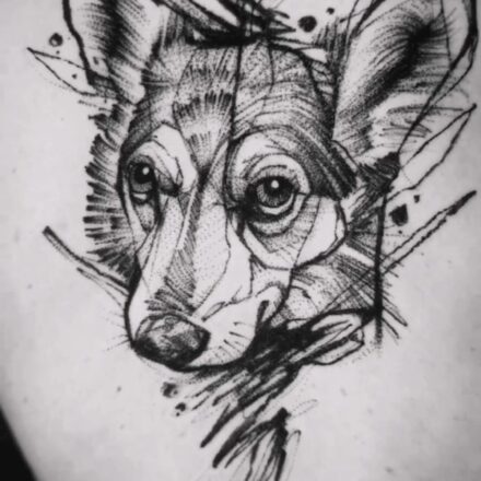 Tetování zvířata, pes na stehnu