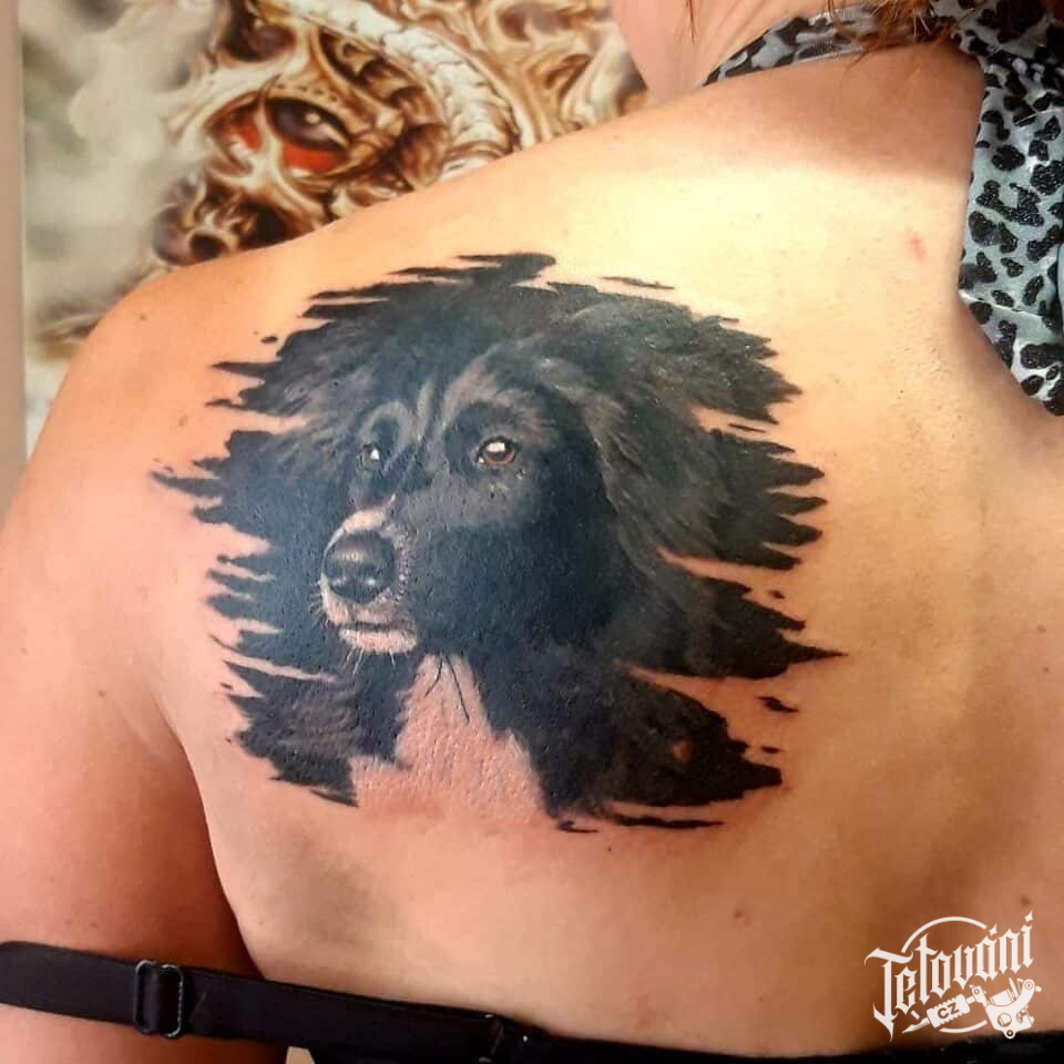 Tetování zvířata, pes na zádech