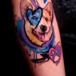 Tetování zvířata, pes, srdce a psí tlapky na lýtko