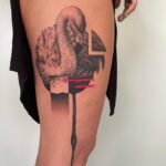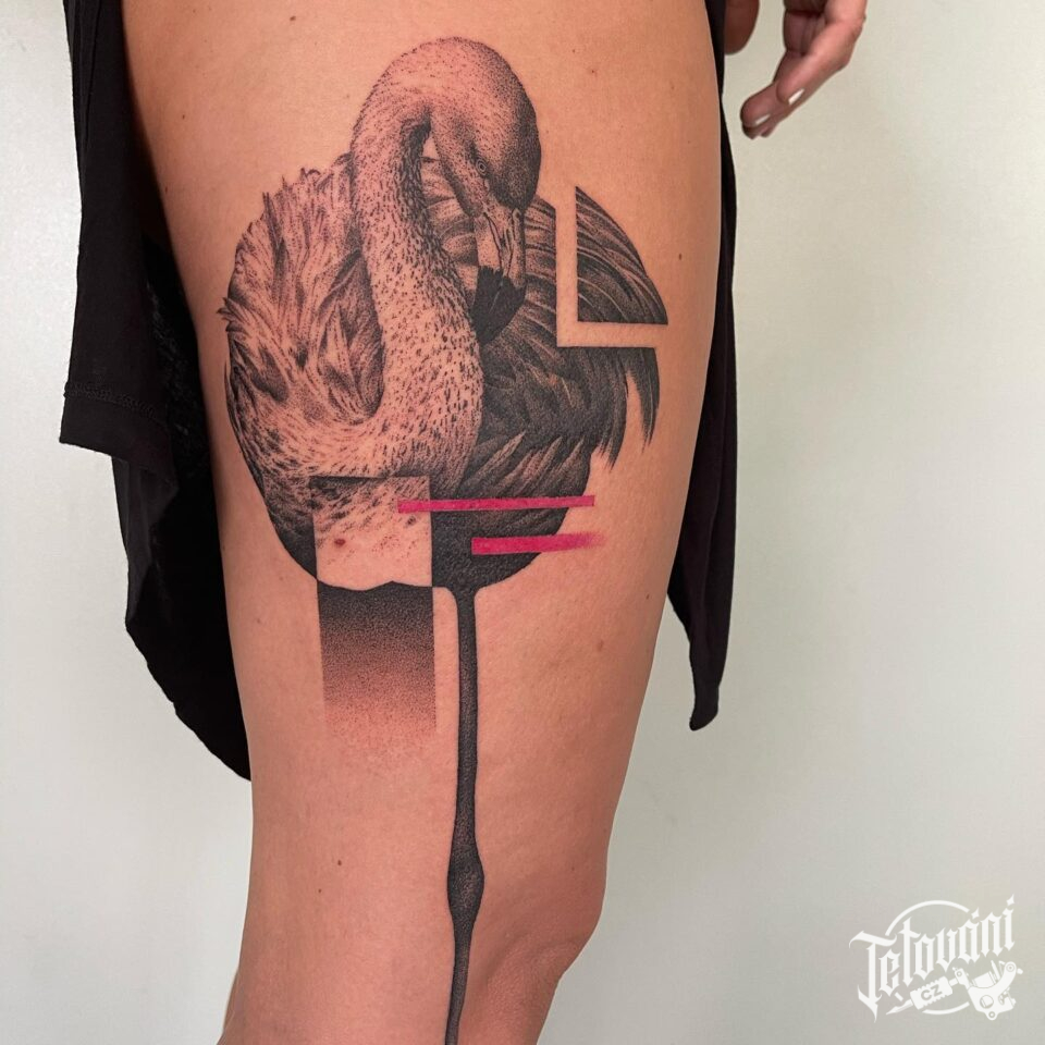 Tetování zvířata, plameňák na stehně