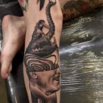 Tetování zvířata, portrét, čáry, pruhy na noze