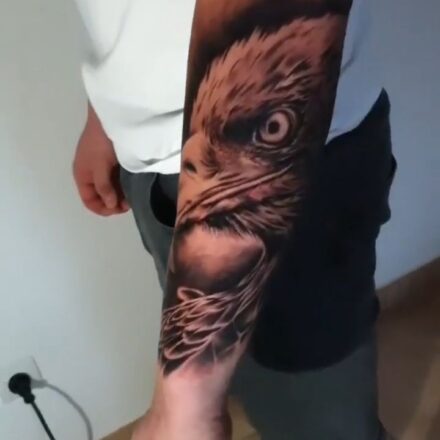 Tetování zvířata, portrét orla na stehně