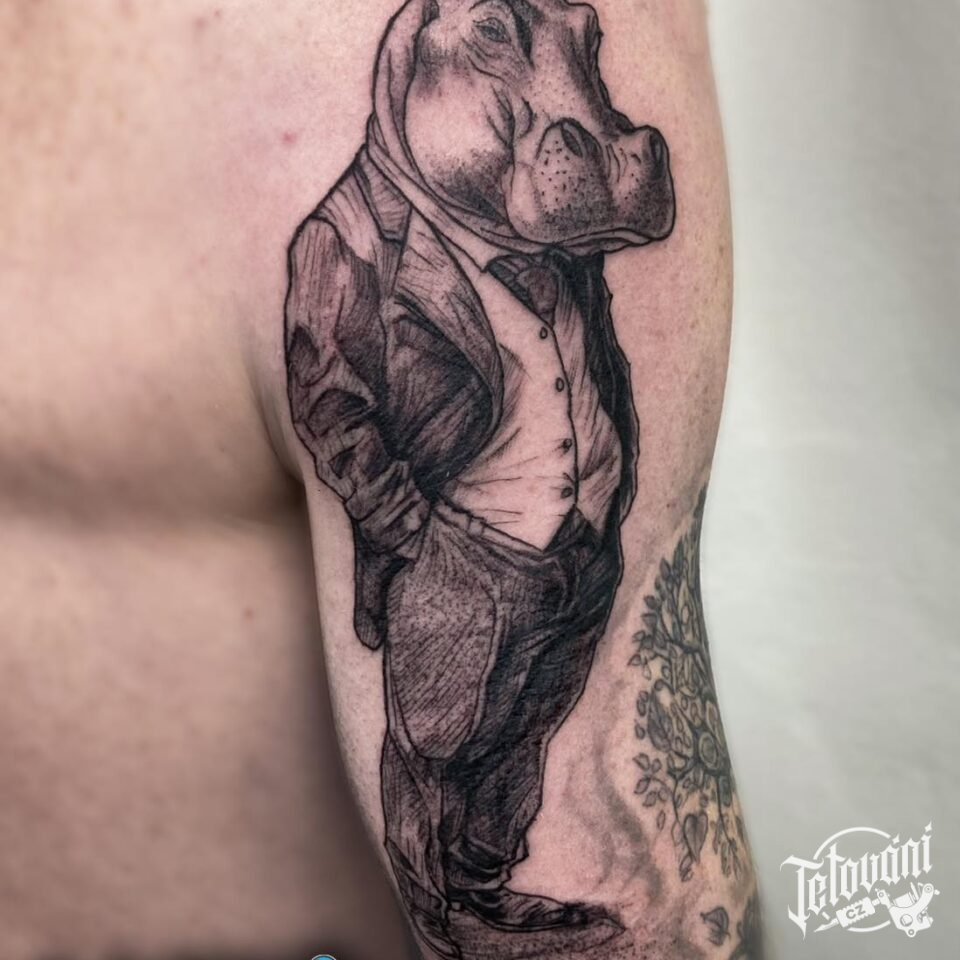 Tetování zvířata, postavička hroch na rameni