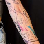 Tetování zvířata psi a abstraktní čáry na předloktí