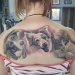 Tetování zvířata, psi a kočka na zádech